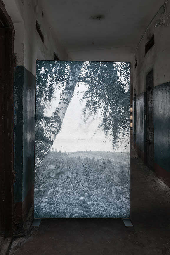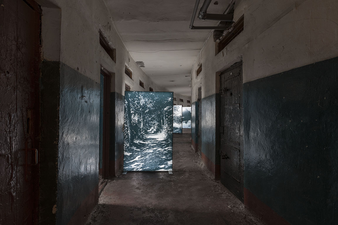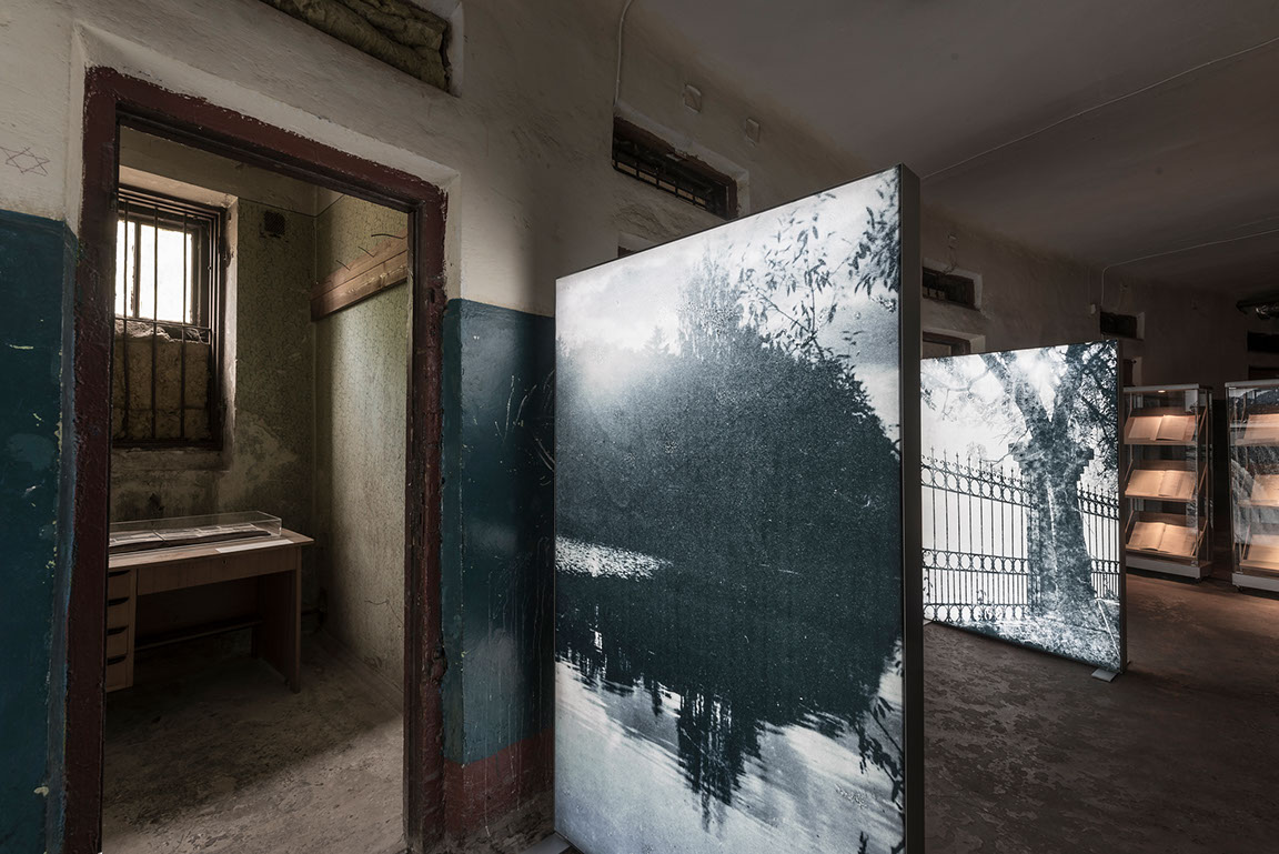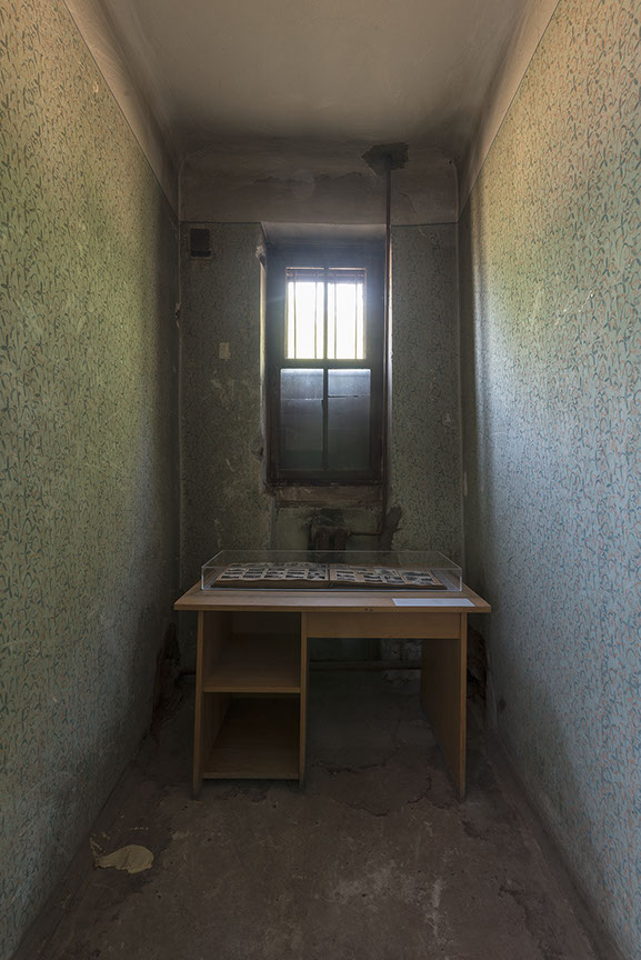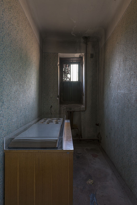 The exhibition explored restricted collections that existed in the state archives during the Soviet period and the processes that took place within them. My approach focused on the photo albums hidden in these secret restricted collections, and more specifically, on the landscape motifs in those albums. The site-specific installation was exhibited in the former prison cell block of the Film Archives building.