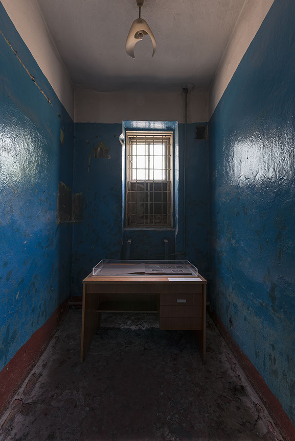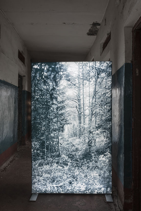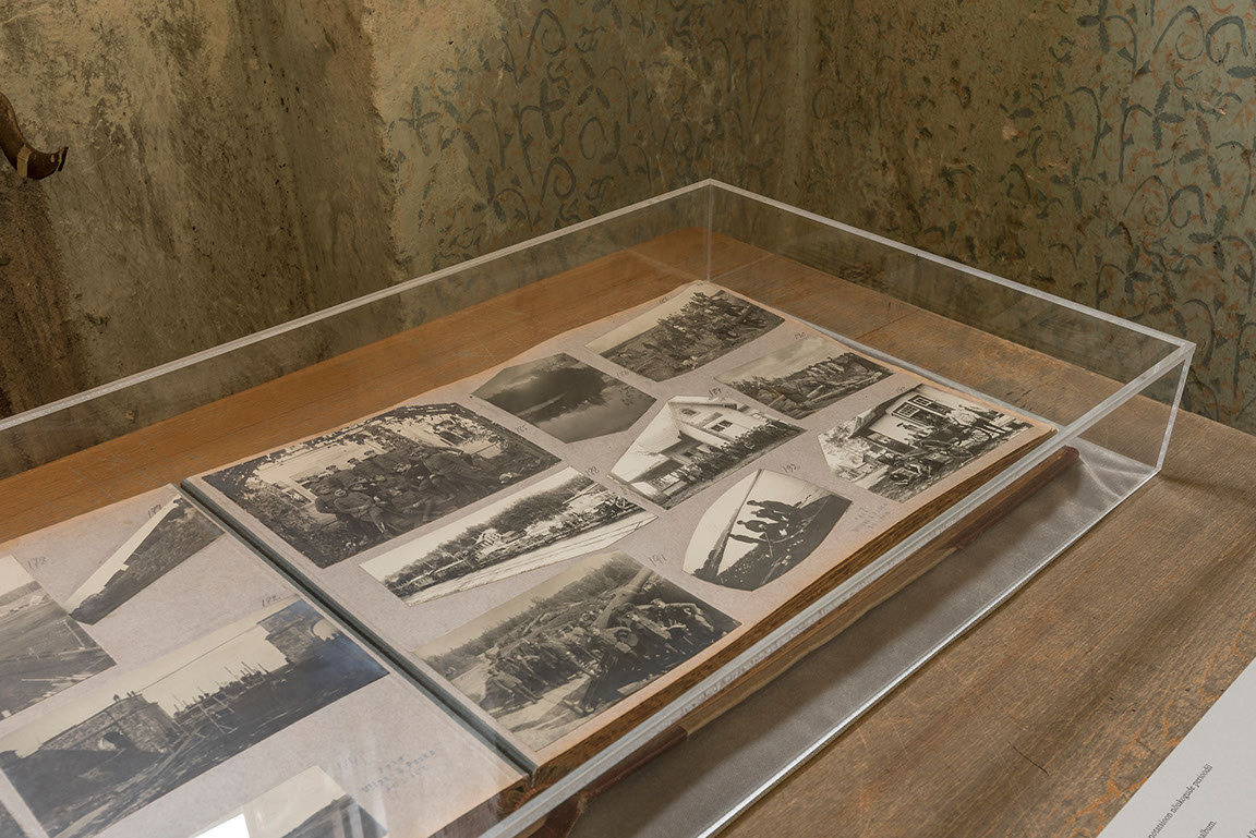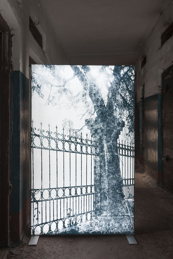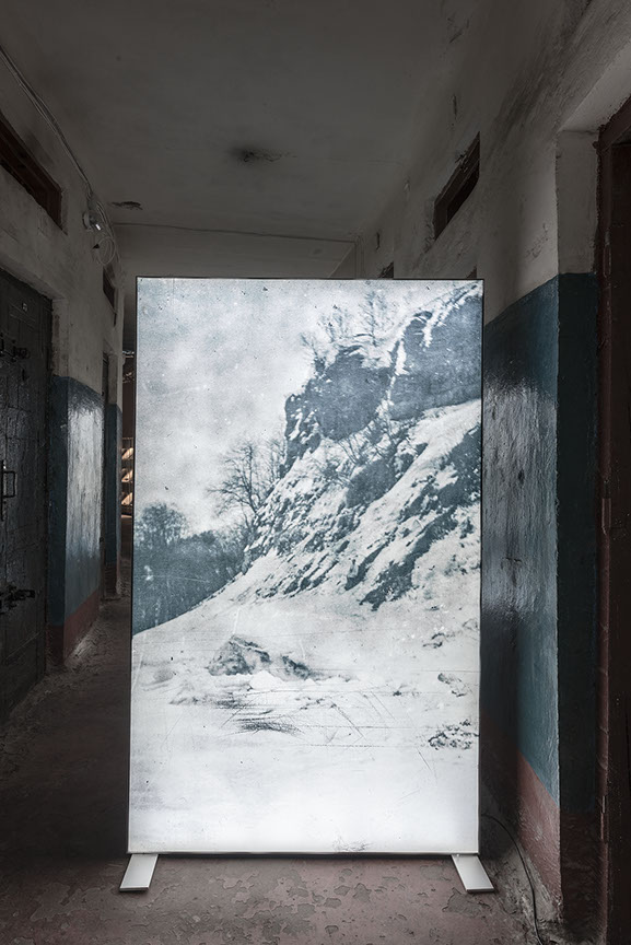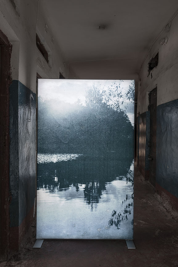 The exhibition explored restricted collections that existed in the state archives during the Soviet period and the processes that took place within them. My approach focused on the photo albums hidden in these secret restricted collections, and more specifically, on the landscape motifs in those albums. The site-specific installation was exhibited in the former prison cell block of the Film Archives building.