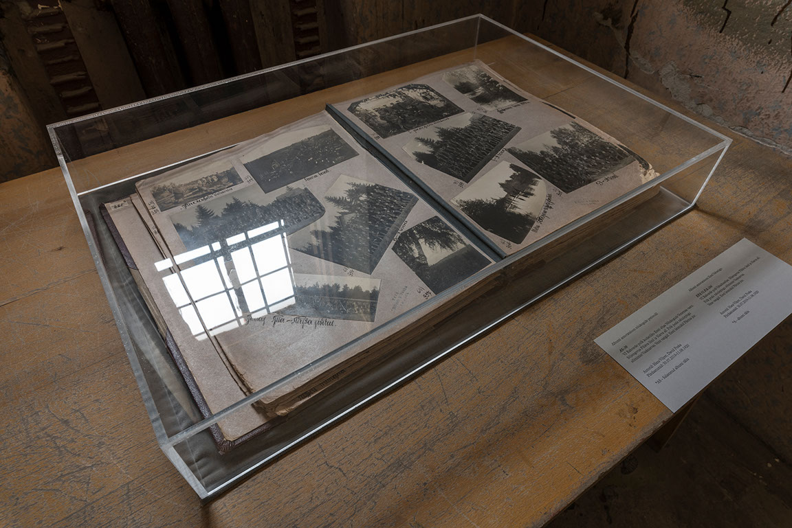 180 𝗑 80 cm lightboxes, prints on canvas, archival photo albums and documents