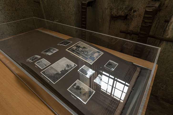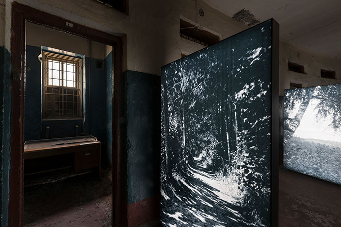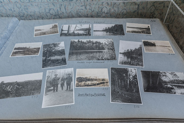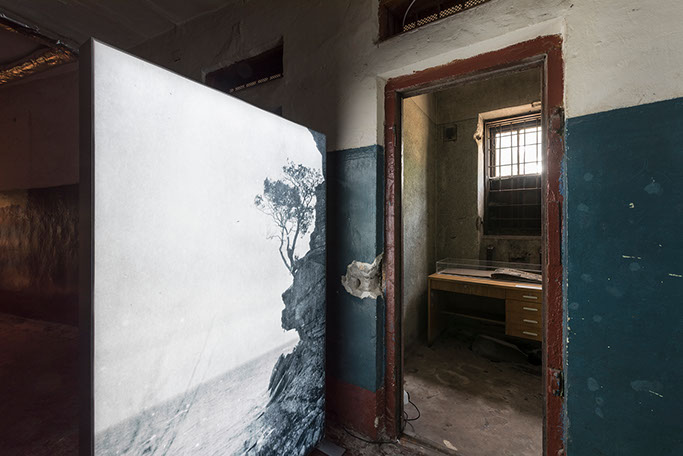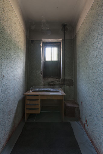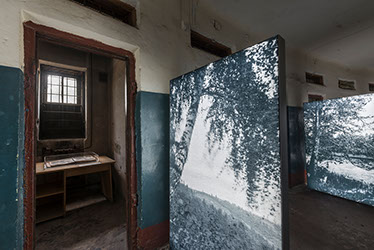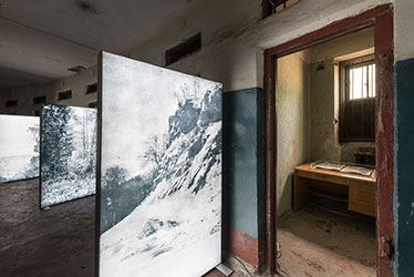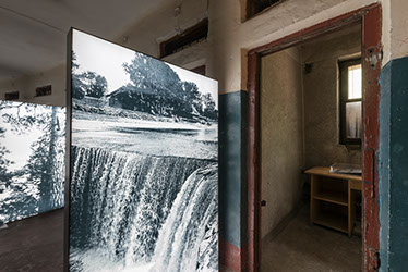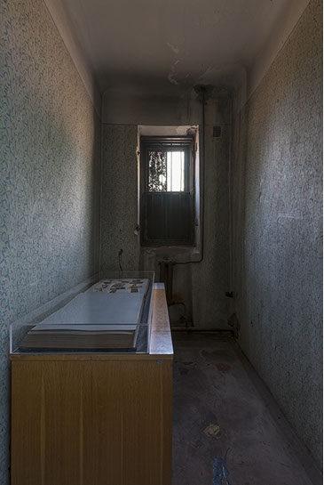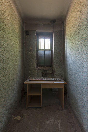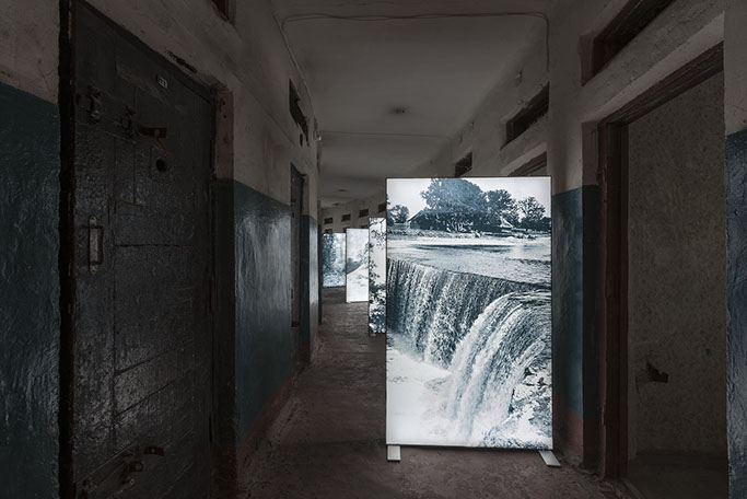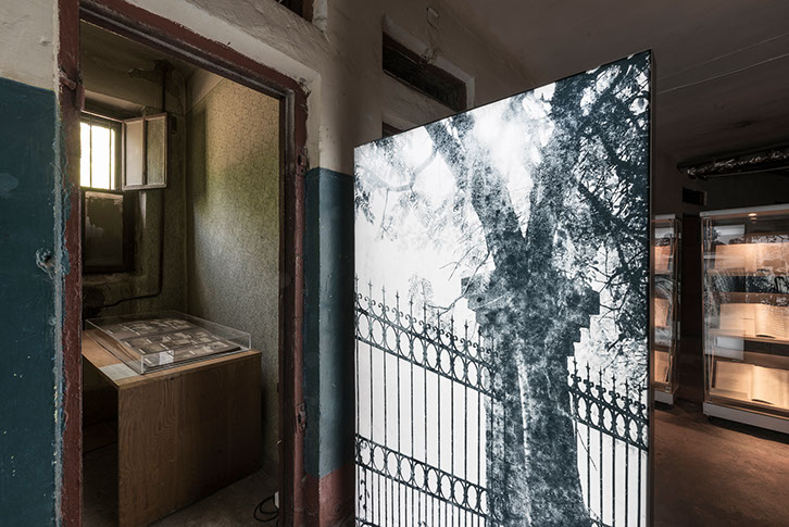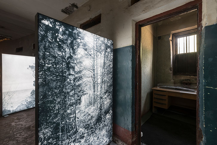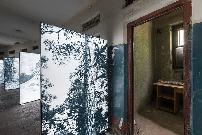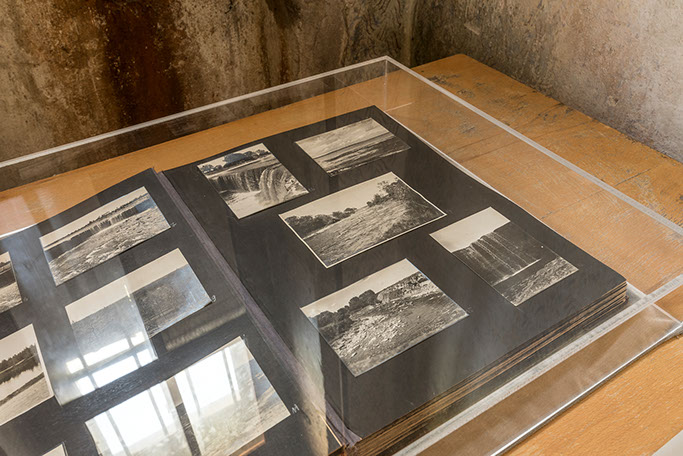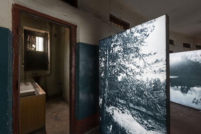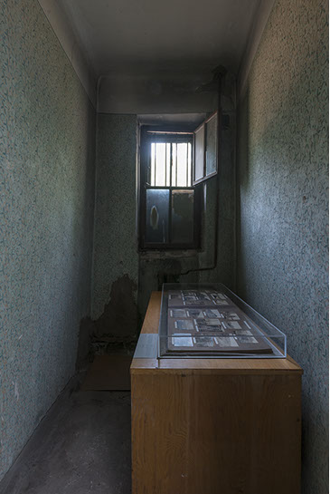 The exhibition explored restricted collections that existed in the state archives during the Soviet period and the processes that took place within them. My approach focused on the photo albums hidden in these secret restricted collections, and more specifically, on the landscape motifs in those albums. The site-specific installation was exhibited in the former prison cell block of the Film Archives building.