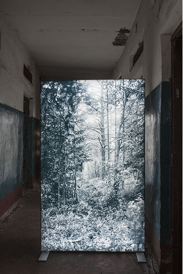 180 𝗑 80 cm lightboxes, prints on canvas, archival photo albums and documents